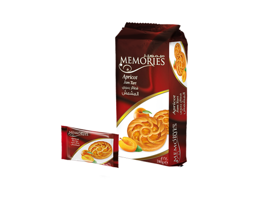 المكونات: دقيق القمح، مربى المشمش (شراب الجلوكوز والفركتوز، مشمش مهروس ٤٠٪، سكر، مغلض قوام: بكتين، نكهة المشمش المماثلة للنكهة الطبيعية، مضاد أكسدة: حمض الأسكوربيك)، سكر، سمن نباتي (زيت نخيل، زيت دوارالشمس)، زبدة، بيض، مواد رافعة: بيكربونات الصوديوم – صوديوم بيروفوسفات – بيكربونات الأمونيوم، مسحوق حليب منزوع الدسم، ملح، نكهة الزبدة المماثلة للنكهة الطبيعية، دكستروز. يحتوي على قمح، حليب، بيض. قد يحتوى على بقايا الفول السوداني والمكسرات والصويا.