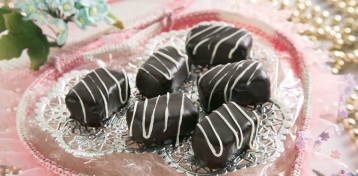 5- ضعي الشوكولاتة البيضاء في قمع ورقي ثم زيني الشوكولاتة على شكل خطوط مائلة, ضعيها في مكان بارد الى أن تتماسك