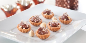 4- الكاسترد: في قدر ضعي الحليب،الماء، بودرة الكاسترد والكاكاو،قلبي الى أن يذوب،ضعيه على نارمتوسطة مع استمرارالتقليب إلى أن يتماسك،دعيه ليبرد تماما، إملئي التارت بالكاسترد،إنثري فوقه البندق،ثم قدميه .